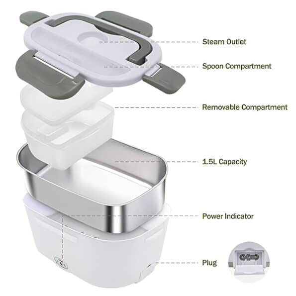 Stanco dei pranzi freddi in ufficio o in viaggio? LUNCHBOX garantisce che i tuoi pasti siano sempre caldi e gustosi – niente attese in fila per il microonde. Basta collegarlo e godere.