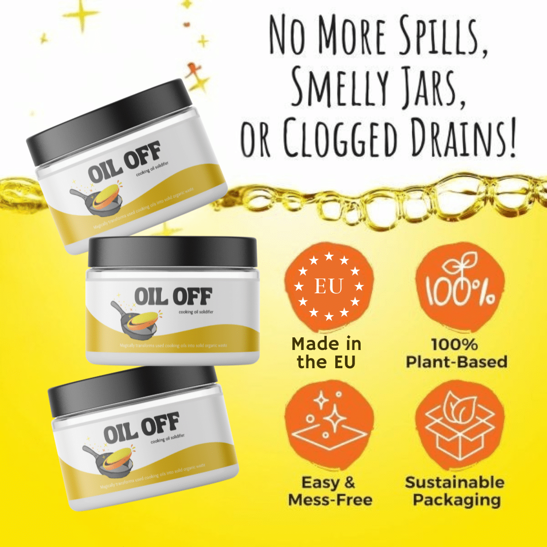 Sprzątanie po smażeniu nie musi być już problemem. OilOff to rewolucyjny proszek, który przekształca pozostały olej do gotowania w stałą substancję, co ułatwia i przyspiesza jego usunięcie – bez bałaganu, bez zatykania odpływów, po prostu proste, czyste rozwiązanie.