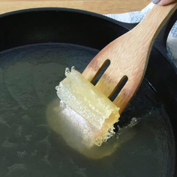 Usage: add 30 g per 100 ml of oil, let cool, and remove solidified block